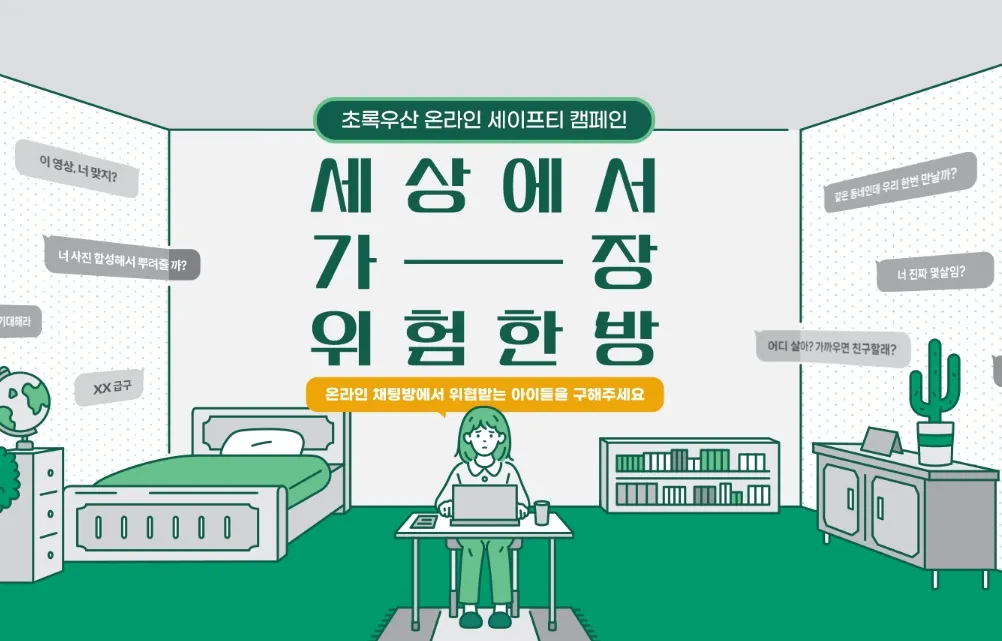 2024년 9월부터 2025년 12월까지, 초록우산은 디지털 환경 속 아동을 위협하는 다양한 요소들에 대한 사회적 경각심을 높이가 위해 <세상에서 가장 위험한 방> 캠페인을 전개했습니다. 해당 캠페인은 디지털 환경 속 아동을 위협하는 요소들이 '(채팅)방‘에서 시작된다는 컨셉으로 관련 통계와 현황을 소개하고, 초록우산 아동권리옹호단의 목소리를 담았습니다. 또한 호주, 미국, 영국의 입법 사례를 분석하며 국내 법 개정의 필요성을 제시했고, 우리나라 현행법 개정을 위해 약13,215명의 시민들이 서명에 동참해주었습니다.